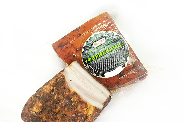 🌟 Попробуйте наш "Фирменный" вареный продукт из свиного шпика! Насыщенный вкус и нежная текстура - идеальное сочетание для любителей деликатесов. Без консервантов, только натуральные ингредиенты. Удобная упаковка по 100гр позволит насладиться этим угощением где угодно! 🥓✨